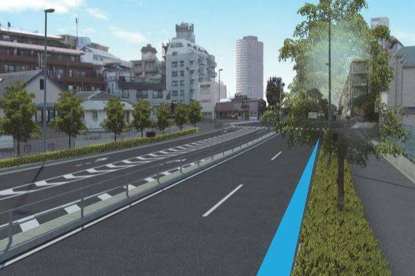 若松河田駅から南へ伸びる道路環状4号・河田町区間の完成イメージ(画像:東京都建設局)。