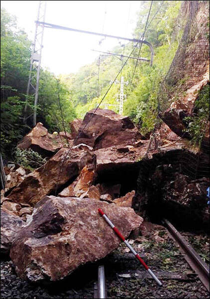 飯田線で発見された落石(画像:JR東海)。