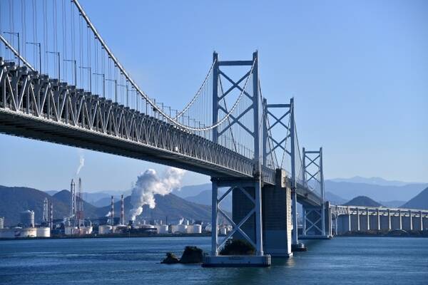 瀬戸大橋。本州と四国を結ぶ唯一の鉄道ルート(画像:写真AC)。