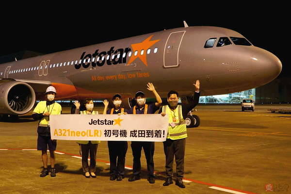LCC(格安航空会社)のジェットスター・ジャパンの新型旅客機「エアバスA321LR」の初号機(機番:JA26LR)が、2022年6月12日の21時20分頃、成田空港へ到着しました。同型機導入にともない、ジェットスター・ジャパンでは外観・機内を新仕様に。成田到着後、その機体が公開されています。