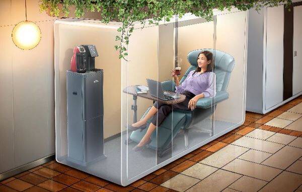 JR東日本は「ブースに入ったらまずコーヒーを楽しみ、少しだけ仕事のことを忘れて5分程度リラックスタイム。シャキッとした状態で快適なワークタイムをお楽しみください」としています。