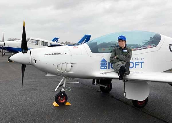 世界一周に挑む前に愛機とともに写真に収まったマック・ラザフォード(画像:MackSolo)。