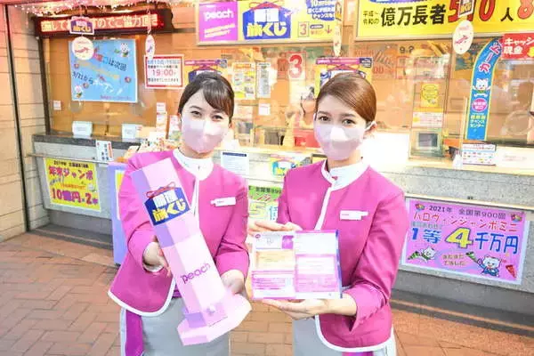 西銀座、八重洲など4店舗でLCC(格安航空会社)のピーチが、東京の有名宝くじ売場という「西銀座チャンスセンター」のほか、八重洲地下街チャンスセンター、立川チャンスセンター、立川ルミネチャンスセンターの4 店舗で「開運旅くじ」の販売を開始しました。
