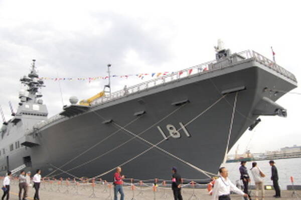 観艦式は無観客護衛艦「ひゅうが」。横浜の大さん橋にて、過去の観艦式の様子(画像:海上自衛隊)。