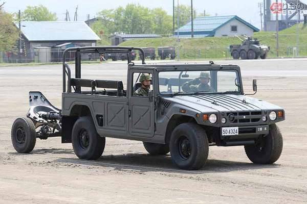日野自動車が製造を請け負う陸上自衛隊の高機動車。そのコンポーネントは兄弟車の1 1/2tトラックにも流用されています。