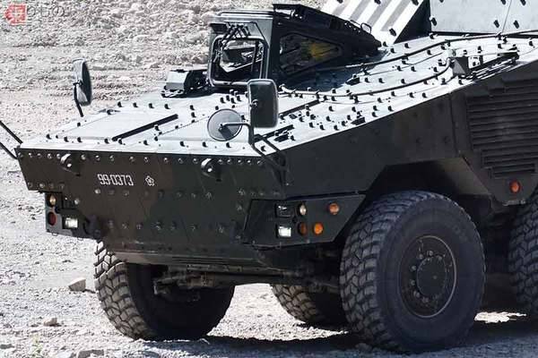 三菱重工が開発した新型の装輪装甲車「MAV」(紀藤 論撮影)。