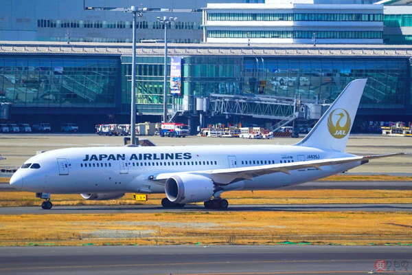 JALでは2022年、新たに「ディズニー」キャラクターの新特別塗装機や、新鋭機であるエアバスA350-900やボーイング787に施された「oneworld」塗装機が出現しましたが、もっともインパクトがあるものとして挙げられるのは、2月から4月に突如出現した、尾翼のロゴマーク「鶴丸」が赤ではなく金色になった「金の鶴丸」塗装機(ボーイング787。JA835J)でしょう。