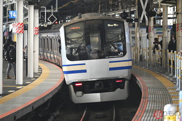 人がこぼれ落ちそうだったホームは…まず、ホームの「すし詰め」状況はやはり多少マシにはなっています。JR東日本によると、ホーム増設で「約3割程度の混雑緩和が見込まれます」としています。とはいえやはり都心への通勤客のほうが際立って多く、次の列車が到着するまでの短時間に、行列の長さはホーム全幅に達しようとするほどです。