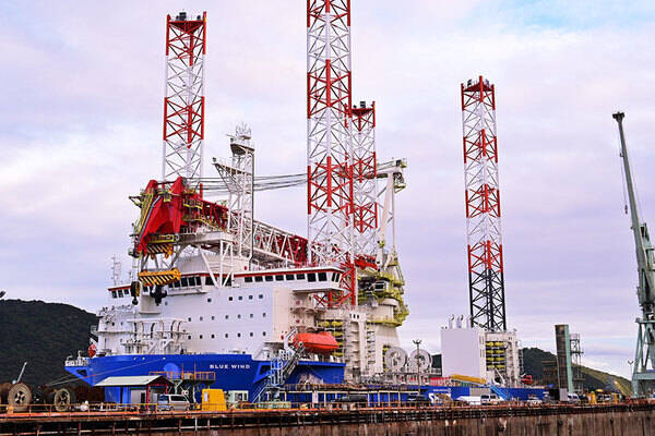 「BLUE WIND」の全幅は50m、全長は142mで、搭載されたクレーンの最大揚重能力(吊り上げ能力)は2500トン、最高揚重高さは158mと世界有数の性能を誇っています。