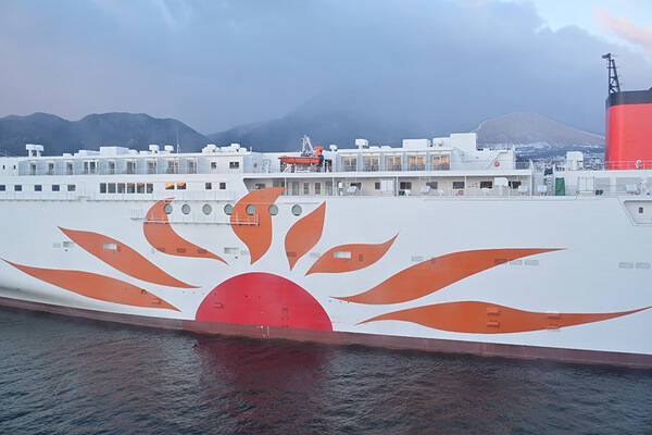 さんふらわあ くれない。さんふらわあ史上最大サイズ(深水千翔撮影)。