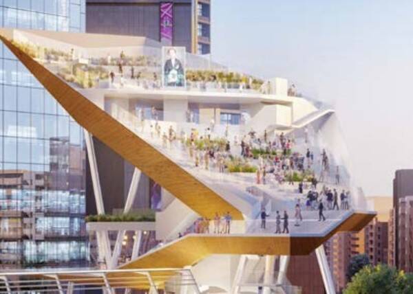 渋谷のあらたな賑わいと交通結節点へ渋谷二丁目西地区A街区の屋上広場(画像:内閣府)。