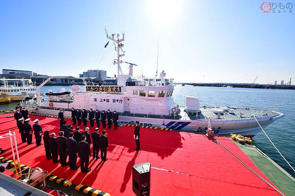ウォータージェット推進で最大速度は36ノット以上海上保安庁は2023年1月26日(木)、大型巡視艇「たかつき」(100総トン)の引き渡し式を墨田川造船(東京都江東区)で実施しました。