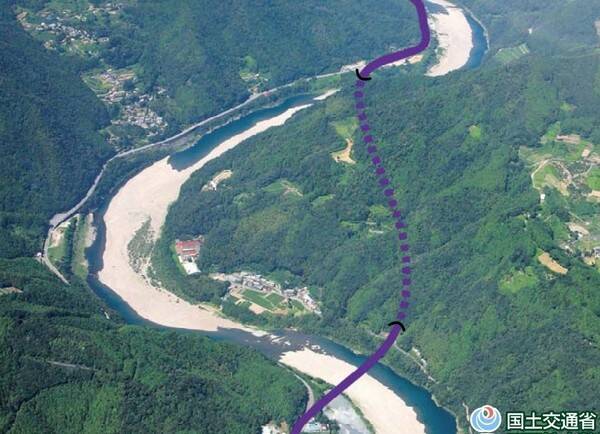 仁淀川沿いのクネクネ道路を一部短絡仁淀川沿いのクネクネ道路を一部短絡する「越知道路」(画像:国土交通省)。