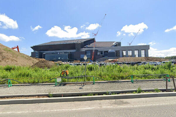 2022年7月建設中の日ハム新球場「エスコンフィールド」及び北海道ボールパークFビレッジ(画像:Google)。