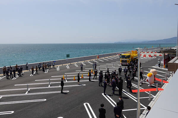 全国のSA・PAのなかでもとりわけ海に近い西湘バイパスの西湘PAがリニューアルオープン。2019年10月の台風で高波にのまれ壊滅的な被害を受け、地盤を嵩上げするなど災害対策が施されました。