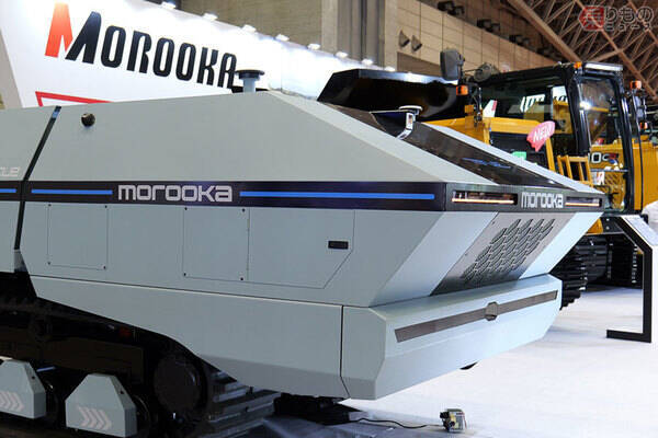 なかには、これまでの建築機械とは全く異なる近未来的な建機も。特に目を引いたのが大型機械メーカー、諸岡(MOROOKA)のブースにあったコンセプトモデル「MAVE 001」(メイブ・ゼロ・ゼロ・ワン)です。全体のフォルムは突起部分が少なく整っており、塗装もSFチックなブルーグレー系で統一。CSPIの会場になければこれが建築機械だとは誰も思わないでしょう。