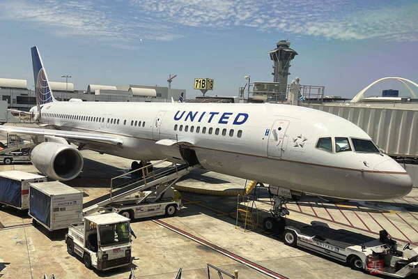 ロサンゼルス空港に駐機するユナイテッド航空機。
