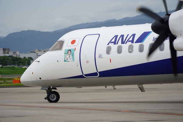 ANAグループではこれまで3機の「鬼滅の刃」の特別デザイン機を就航させてきましたが、いずれもジェット機でした。今回はグループ会社で、地方路線など担当するANAウイングスが保有するプロペラ機、DHC8-Q400がコラボデザイン機を担当。プロペラ機が「鬼滅の刃」の特別デザインとなるのは、今回が初です。