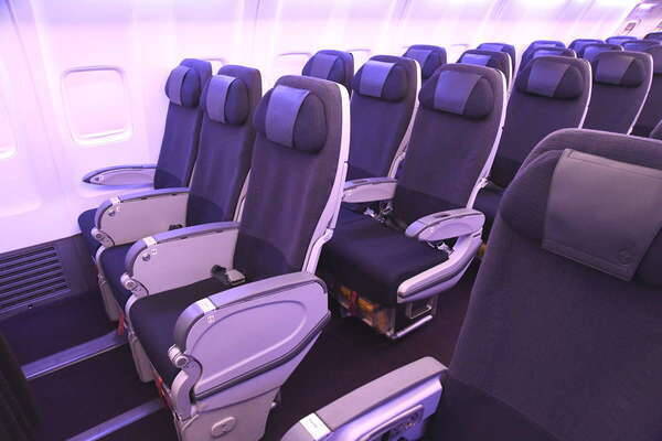 ANAのボーイング787-10「エコノミークラス」(伊藤真悟撮影)。