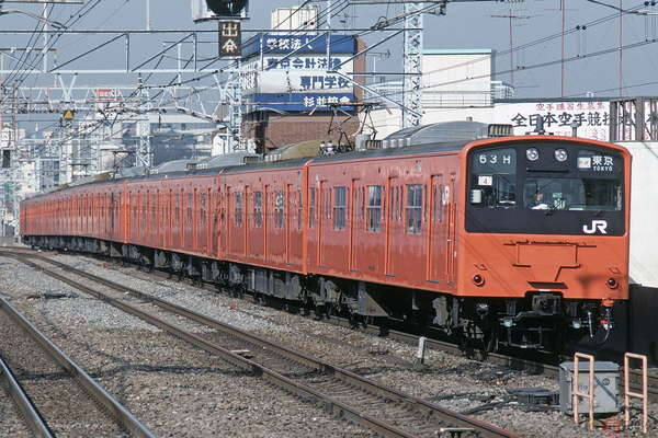 申し込みは先着順JRとなって間もない頃の中央線を行く201系電車(1990年3月、伊藤真悟撮影)。