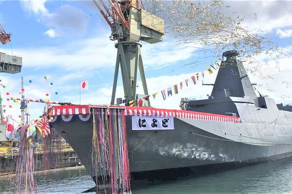 もがみ型護衛艦の7番艦「によど」の進水式の様子(画像:三菱重工)。