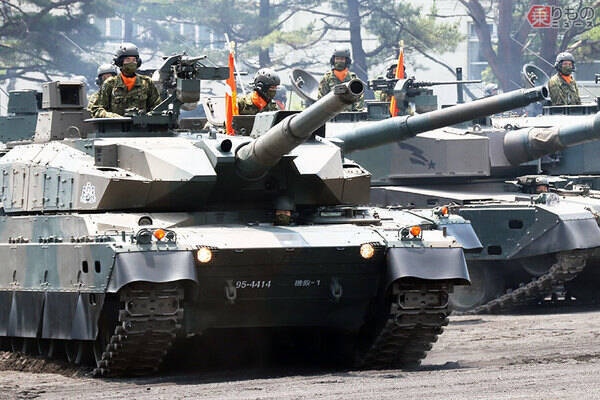 富士学校隷下の富士教導団機甲教導連隊に所属する10式戦車と90式戦車(乗りものニュース編集部撮影)。