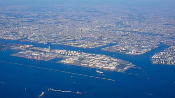 上空から見た扇島地区(画像:写真AC)。