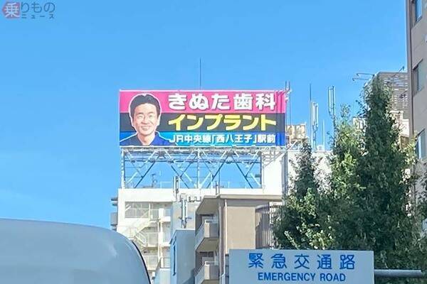 ほかにも東海道新幹線の新横浜~小田原間には、文字も全くない院長の顔だけの「きぬた歯科」看板があります。高速で通過する一瞬、窓から見えるもので、インパクトを狙っているそうです。