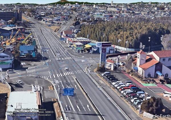 4車線開通を望む四街道市2010年に一部4車線化した千葉市内の国道51号(画像:Google Earth)。