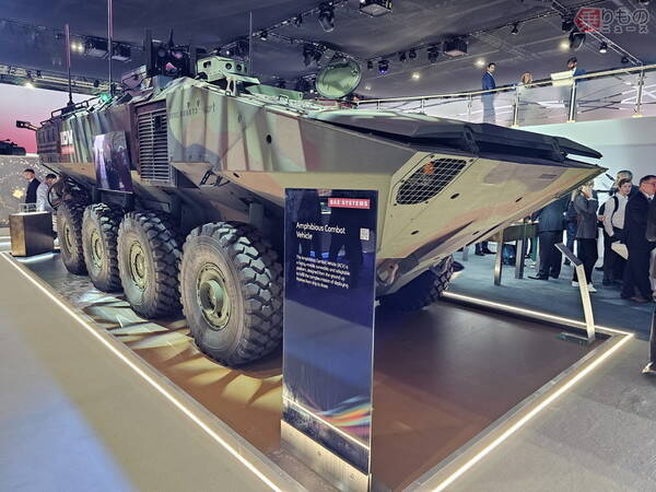 イギリスで開催された防衛装備見本市「DSEIロンドン」で展示されていたBAEシステムズの新型水陸両用車「ACV」(飯柴智亮撮影)。