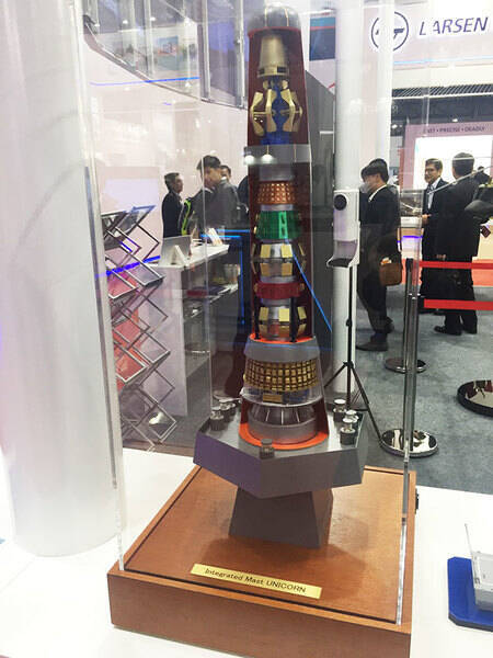 ベトナム国際ディフェンスエキポ2022で展示された「ユニコーン」マストのカットモデル(竹内 修撮影)。