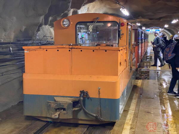 地下トンネルを進むトロッコ列車(乗りものニュース編集部撮影)。