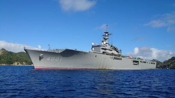 海上自衛隊の輸送艦「おおすみ」(画像:写真AC)。