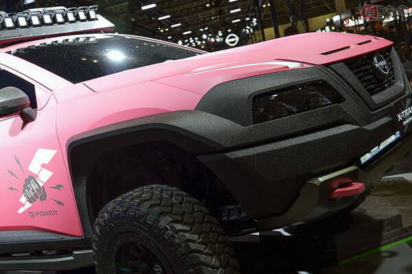 展示された「X-TRAIL CRAWLER CONCEPT」。ベースカラーのピンクは、他に例のない配色で会場では目を引いた(布留川 司撮影)。