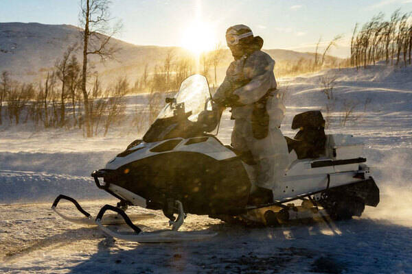 コマンド部隊兵士とスノーモビル(画像:イギリス海兵隊)。