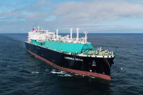 川崎汽船が建造したLNG輸送船「LAGENDA SETIA」。中国の滬東中華造船が建造(画像:川崎汽船)。