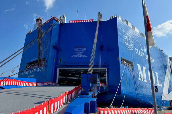 商船三井の次世代「自動車運搬船」1隻目商船三井は2024年3月13日、LNG(液化天然ガス)燃料の自動車船「CERULEAN ACE」が竣工したと発表しました。