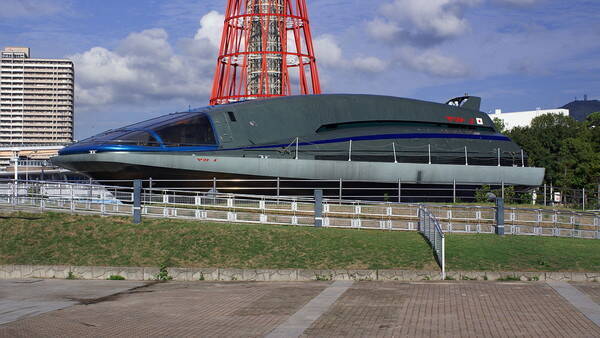 神戸海洋博物館に展示されていた磁気流体推進(MHD)の実験船「ヤマト1」。2017年3月に解体された(画像:663高地, CC BY-SA 3.0, via Wikimedia Commons)。