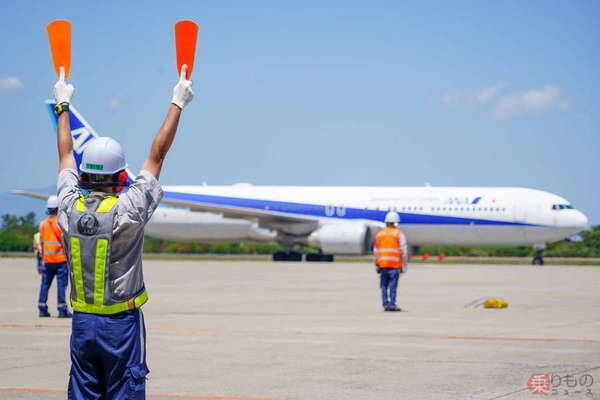 この制度を用いることができるのは、旅客機の駐機の誘導を行うマーシャラーなど7資格。仙台空港で”二刀流”の業務を行うスタッフは5月14日時点で2人ですが、今後拡大も予定されているとのこと。なお、この制度で2社のマーシャリング資格を保有したスタッフによると「JALの機体だと徐行(を指示するポーズ)をいれないが、ANAさんは徐行を入れてから停止合図するなどの違いがあります」と話します。