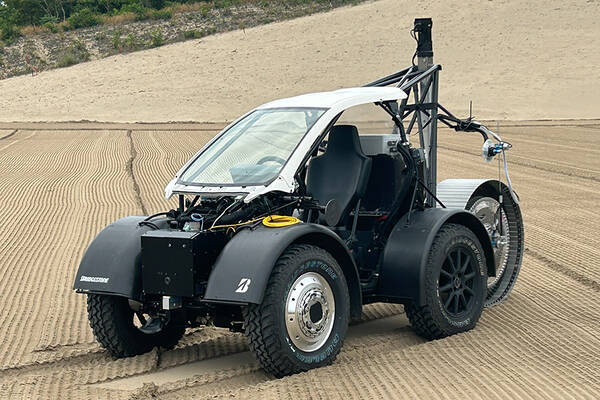 鳥取砂丘では、月面に類似した砂丘の砂地を活し「鳥取砂丘月面実証フィールド(愛称:ルナテラス)」という実験エリアを2023年7月から設置しており、ブリヂストンは同エリアでの走行試験を通じて、タイヤの耐久性能や駆動力などのデータを積み上げています。
