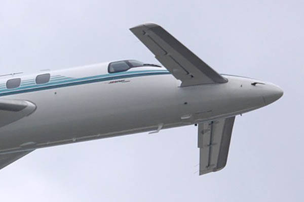 この機体は1986年に初飛行した、ビーチクラフト「スターシップ」というビジネス機です。エンジン2基が胴体後部に設置されたのは、客室の静粛性を重視したため。ユニークなエンジン配置のみならず、先進的な設計を持つ機体としても知られ、民間機として初めて機体のメイン素材に複合材を使用し当局側の承認を得た機体であったほか、初めて「グラスコックピット」の搭載モデルと記録されています。また、この機は垂直尾翼がなく、そのかわりに方向舵制御は両翼の反り立った翼「フィン」により操陀していたとのことです。