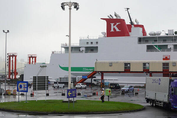苫小牧西港のシルバーフェリー「シルバーエイト」。8月11日、12日は欠航する(乗りものニュース編集部撮影)。