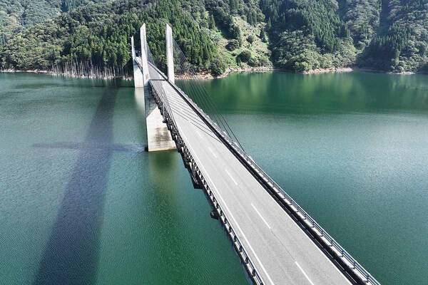 美しい景色と、酷道時代の名残に感動クラウンロードの岐阜県側は、横山ダム、徳山ダムがある揖斐川に沿って道路が続いており、左右に次々と現れる光景がまず壮大。水面に景色が反射して浮かび上がるほどで、景色の美しさに感動しました。