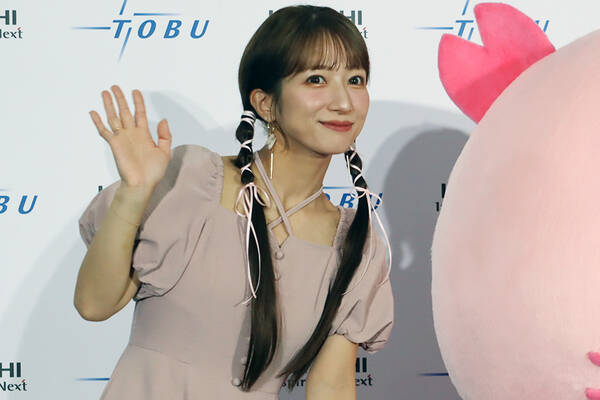 発表会に登壇した辻 希美さん(乗りものニュース編集部撮影)。