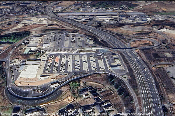 実証実験が行われる佐野SA下り線(画像:Google earth)。
