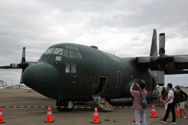 C-130H戦術輸送機。航空自衛隊では約40年前から運用している(水野二千翔撮影)