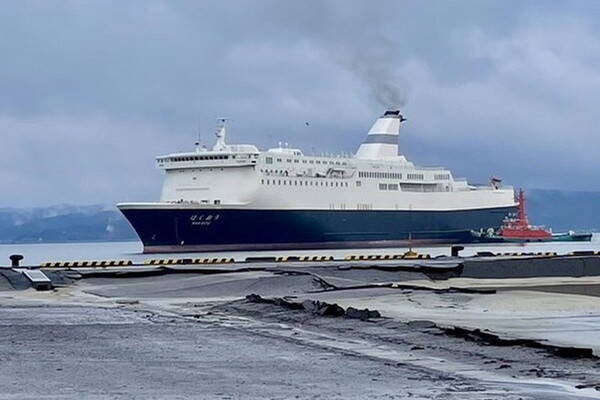 令和6年能登半島地震に係る災害派遣で、七尾港に派遣された防衛省のチャーター船「はくおう」(画像:防衛省)。