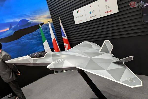 2024年10月に東京お台場で開催の「2024国際航空宇宙展」で展示されていた日英伊共同開発の次世代戦闘機GCAPのスケールモデル(乗りものニュース編集部撮影)。