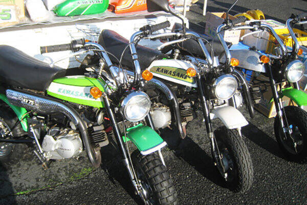 カワサキがかつて生産していたモンキー的存在のレジャーバイク、KV75(玉田欽一撮影)。