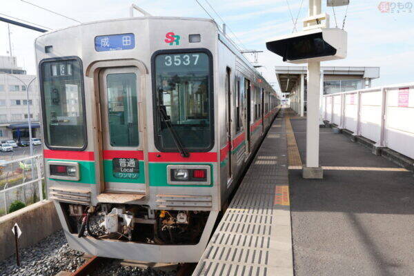 鉄道延伸に可能性はありそうか東成田13時0分発の芝山千代田行きには14人が乗車していました。車両は芝山鉄道3500形電車でした。これは京成3500形電車3537編成4両を芝山鉄道がリースした車両で、「芝山鉄道」と書かれたプレートも。芝山鉄道はこの4両しか保有していないのでレア車両です。同社ウェブサイトでは運用が告知されています。
